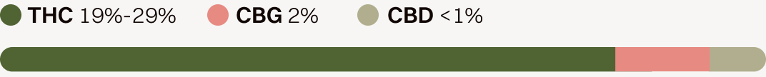 Cultiva® – Lee Anne Womac is a medicinal cannabis flower with a high percentage of THC (delta-9-tetrahydrocannabinol) and a high percentage of CBG. It is a 50:50 (indica | sativa) hybrid strain that is an exotic cross between Watermelon OG and Miracle Alien Cookies, originally bred by Lit Farms - a well-known North American cannabis breeder.